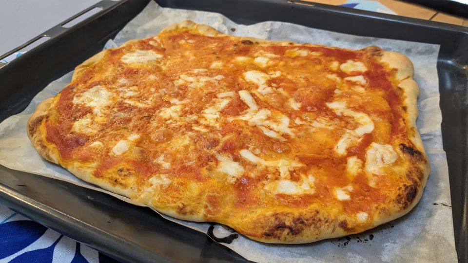 11. Procedere con la STESURA: a mano o con il mattarello, cercare di creare un disco di pasta uniforme, posizionare la pasta in una teglia precedentemente oliata, fare le classiche fossette con le dita, condire a piacere.